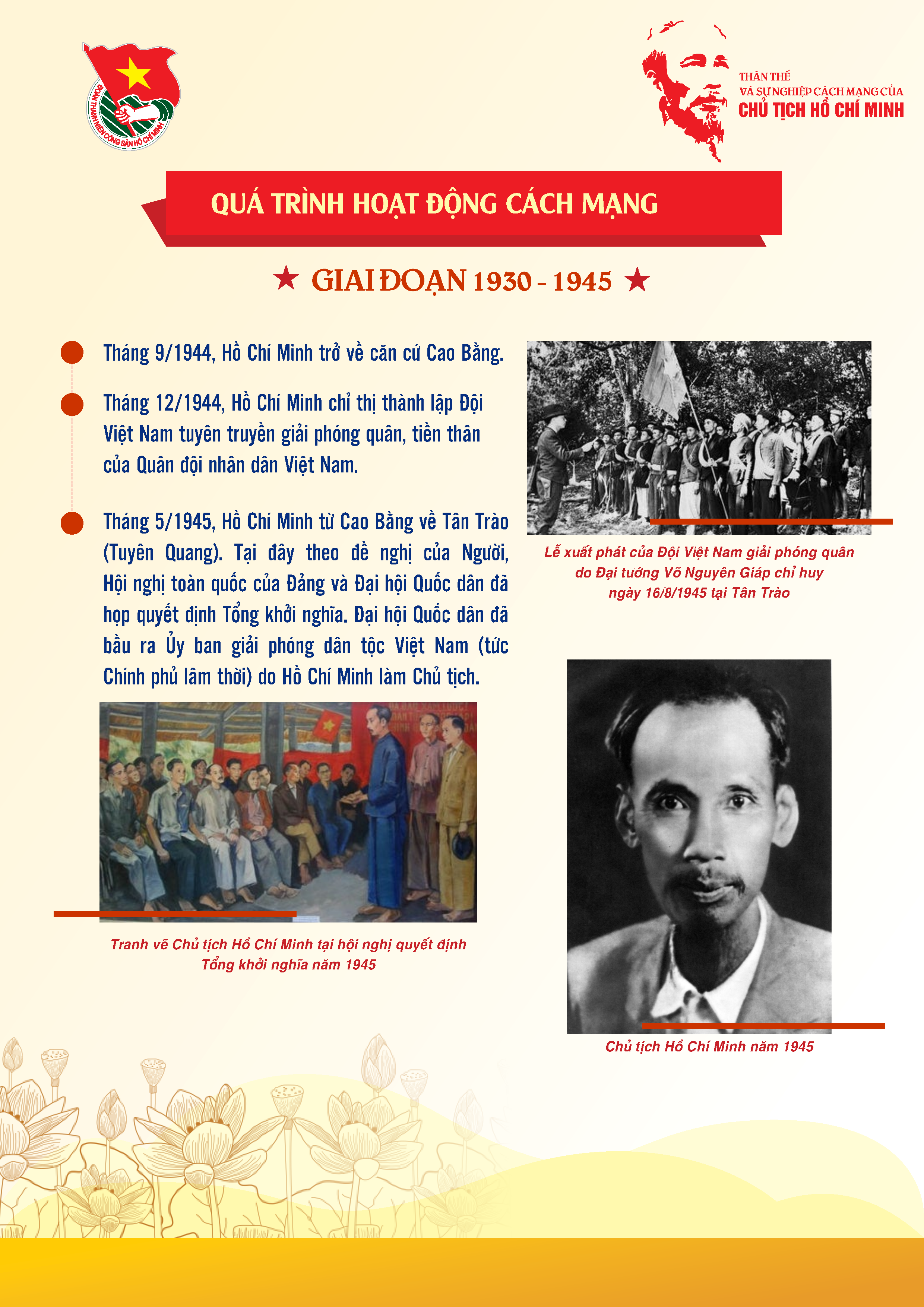 Tháng 05/1941, Hội nghị Trung ương lần thứ tám họp tại Pác Bó (Cao Bằng) dưới sự chủ trì của Người. Hội nghị đã đặt nhiệm vụ giải phóng dân tộc lên hàng đầu, Người khẳng định: “Trong lúc này quyền lợi dân tộc giải phóng cao hơn hết thảy. Chúng ta phải đoàn kết lại đánh đổ bọn đế quốc và bọn Việt gian đặng cứu giống nòi ra khỏi nước sôi lửa nóng”(5). Để tập hợp đông đảo các tầng lớp nhân dân, tranh thủ mọi lực lượng yêu nước chống đế quốc, giành độc lập cho dân tộc, chĩa mũi nhọn vào kẻ thù. Hội nghị quyết định thành lập “Việt Nam độc lập đồng minh”, gọi tắt là Mặt trận Việt Minh vào ngày 19/05/1941. Ngày 22/12/1944, Đội Việt Nam tuyên truyền giải phóng quân được thành lập, là tiền thân của Quân đội nhân dân Việt Nam. Ngày 18/08/1945, Người viết thư kêu gọi Tổng khởi nghĩa giành chính quyền, Người viết: “Giờ quyết định cho vận mệnh dân tộc ta đã đến. Toàn quốc đồng bào hãy đứng dậy đem sức ta mà tự giải phóng cho ta”(6). Cách mạng Tháng Tám năm 1945 thành công, lật đổ chế độ phong kiến, lật đổ ách thống trị của thực dân Pháp và giành lại độc lập dân tộc từ tay phát xít Nhật. Đây là thắng lợi to lớn của dân tộc vừa là sự kế thừa truyền thống của cha ông ta trong lịch sử, vừa là sự tiếp thu, vận dụng sáng tạo của chủ nghĩa Mác-Lênin và sự lãnh đạo tài tình của Chủ tịch Hồ Chí Minh.