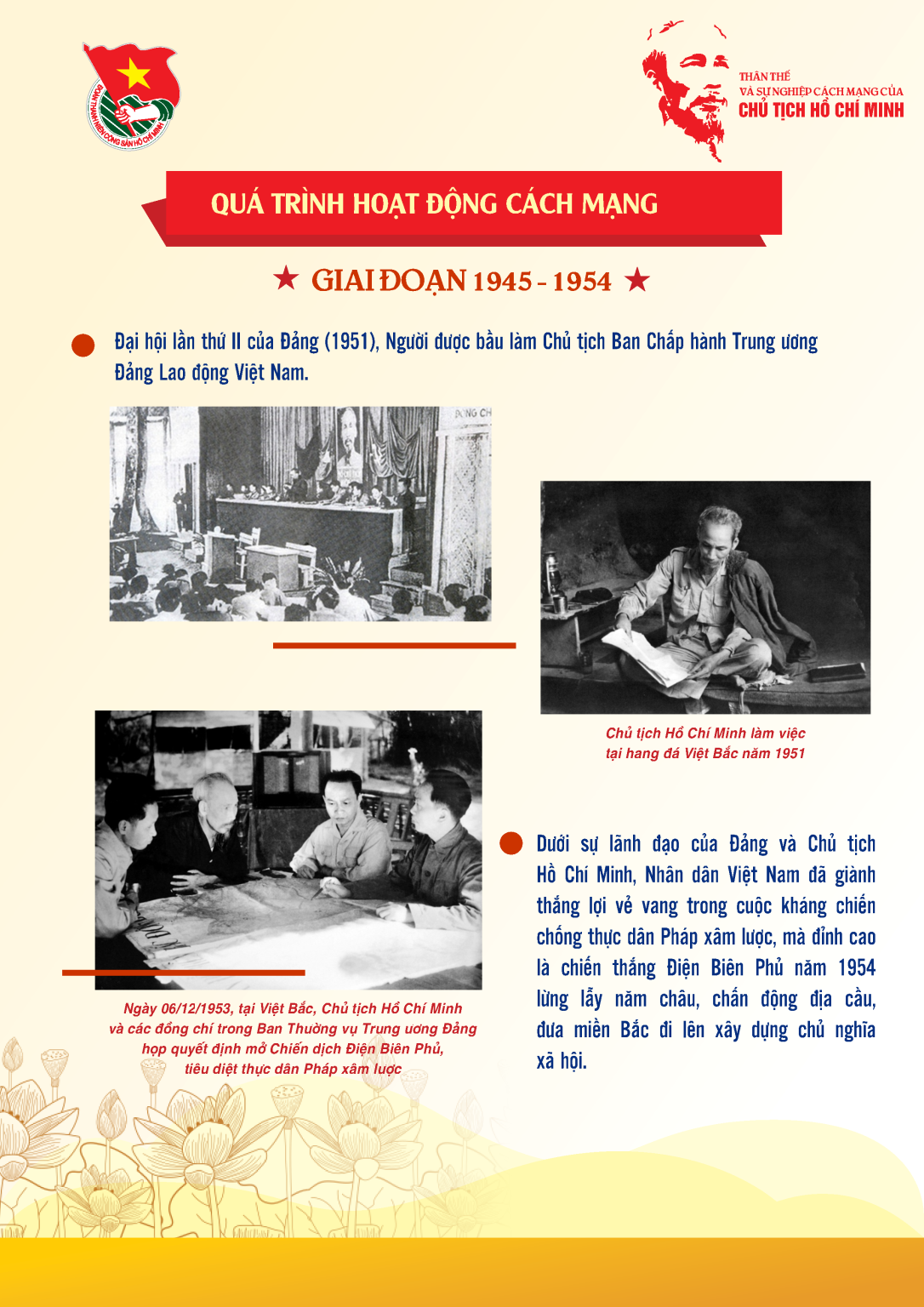 Năm 1951, Người cùng Trung ương Đảng quyết định triệu tập Đại hội toàn quốc lần thứ II của Đảng, đưa Đảng ra công khai với tên là Đảng Lao động Việt Nam và bầu Người làm Chủ tịch Ban chấp hành Trung ương Đảng. Trong Thư gửi Đại hội trù bị, Người viết: “Nhiệm vụ chính của Đại hội ta là đẩy kháng chiến đến thắng lợi hoàn toàn và xây dựng Đảng Lao động Việt Nam”(11). Đại hội đã thông qua Cương lĩnh mới, Điều lệ mới của Đảng đề ra chủ trương, đường lối đúng đắn, giải quyết mối quan hệ giữa dân tộc và giai cấp nhằm động viên toàn Đảng, toàn quân, toàn dân ta đẩy mạnh kháng chiến đưa đến thắng lợi ở Điện Biên Phủ lịch sử (năm 1954) lừng lẫy năm châu, chấn động địa cầu. Người chỉ đạo, động viên cán bộ chiến sĩ trên mặt trận và truyền thêm sức mạnh, ý chí quyết chiến quyết thắng, một niềm tin sắt đá để quân và dân ta vượt qua mọi khó khăn, gian khổ giành thắng lợi. Trong Thư gửi Mặt trận Điện Biên Phủ, Người viết: “Thu Đông năm nay, các chú lại có nhiệm vụ tiến quân vào Điện Biên Phủ để tiêu diệt thêm sinh lực địch, mở rộng thêm căn cứ kháng chiến, giải phóng thêm đồng bào còn bị giặc đè nén”(12). Tháng 7-1954, Hiệp định Giơnevơ được ký kết, miền Bắc Việt Nam được giải phóng, nhưng miền Nam vẫn bị đế quốc Mỹ xâm lược. Người cùng Trung ương Đảng lãnh đạo nhân dân cả nước đồng thời thực hiện hai nhiệm vụ chiến lược: cách mạng xã hội chủ nghĩa ở miền Bắc và cách mạng dân tộc dân chủ nhân dân ở miền Nam.