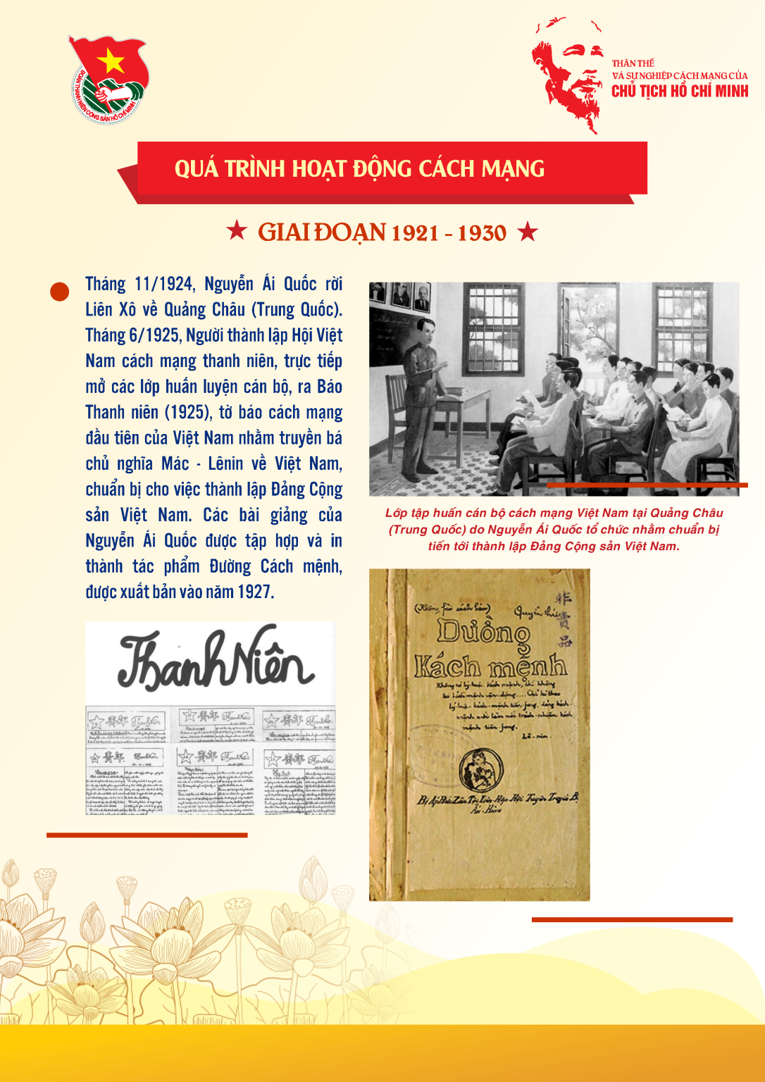Năm 1925, Người đã viết tác phẩm Bản án chế độ thực dân Pháp, nhằm tố cáo tội ác của chủ nghĩa thực dân Pháp, nêu rõ nỗi thống khổ và sức mạnh của nhân dân các nước thuộc địa. Tại Quảng Châu, Nguời thành lập Việt Nam Thanh niên cách mạng đồng chí hội mở lớp huấn luyện, đào tạo trực tiếp cán bộ cho cách mạng Việt Nam, ra báo Thanh niên bằng tiếng Việt. Đây là tờ báo cách mạng đầu tiên của Việt Nam nhằm truyền bá chủ nghĩa Mác- Lênin và lý luận cách mạng cho những người yêu nước. Các bài giảng của Người tại lớp huấn luyện được tập hợp in thành cuốn Đường Cách mệnh (1927) đề cập nhiều nội dung, nhiều vấn đề trong đường lối và phương pháp cách mạng Việt Nam. Đây là một trong những văn kiện lý luận đầu tiên của Đảng, đặt cơ sở tư tưởng cho đường lối cách mạng Việt Nam sau này. Ngoài ra, Người còn viết rất nhiều tác phẩm và nhiều bài trên báo Việt Nam độc lập, với nội dung ca ngợi truyền thống yêu nước, tinh thần đoàn kết, quật cường của dân tộc, kêu gọi các tầng lớp nhân dân tham gia vào các hội, đoàn thể cứu quốc, kêu gọi các đảng cộng sản ở chính quốc phải giúp đỡ phong trào giải phóng ở thuộc địa. Thông qua báo chí và các hoạt động thực tiễn, Người tích cực truyền bá chủ nghĩa Mác – Lênin vào phong trào công nhân và phong trào yêu nước Việt Nam; Người đẩy mạnh việc tuyên truyền, giáo dục, khơi dậy tinh thần dân tộc, hướng dẫn xây dựng lực lượng chính trị và lực lượng vũ trang góp phần tạo ra một cao trào cứu nước mạnh mẽ để đón thời cơ, tiến tới tổng khởi nghĩa giành độc lập, tự do cho dân tộc.